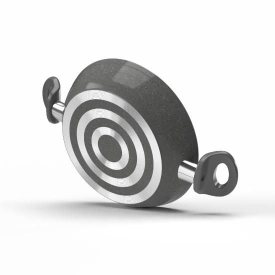 - يتمتع الصحن بطلاء جرانيت كوري متطور، مما يضمن عدم التصاق البيض على السطح. يسهل هذا الطلاء عملية الطهي والتنظيف، مما يسمح لكي بتحضير الطعام بشكل صحي دون الحاجة لاستخدام كميات كبيرة من الدهون.
