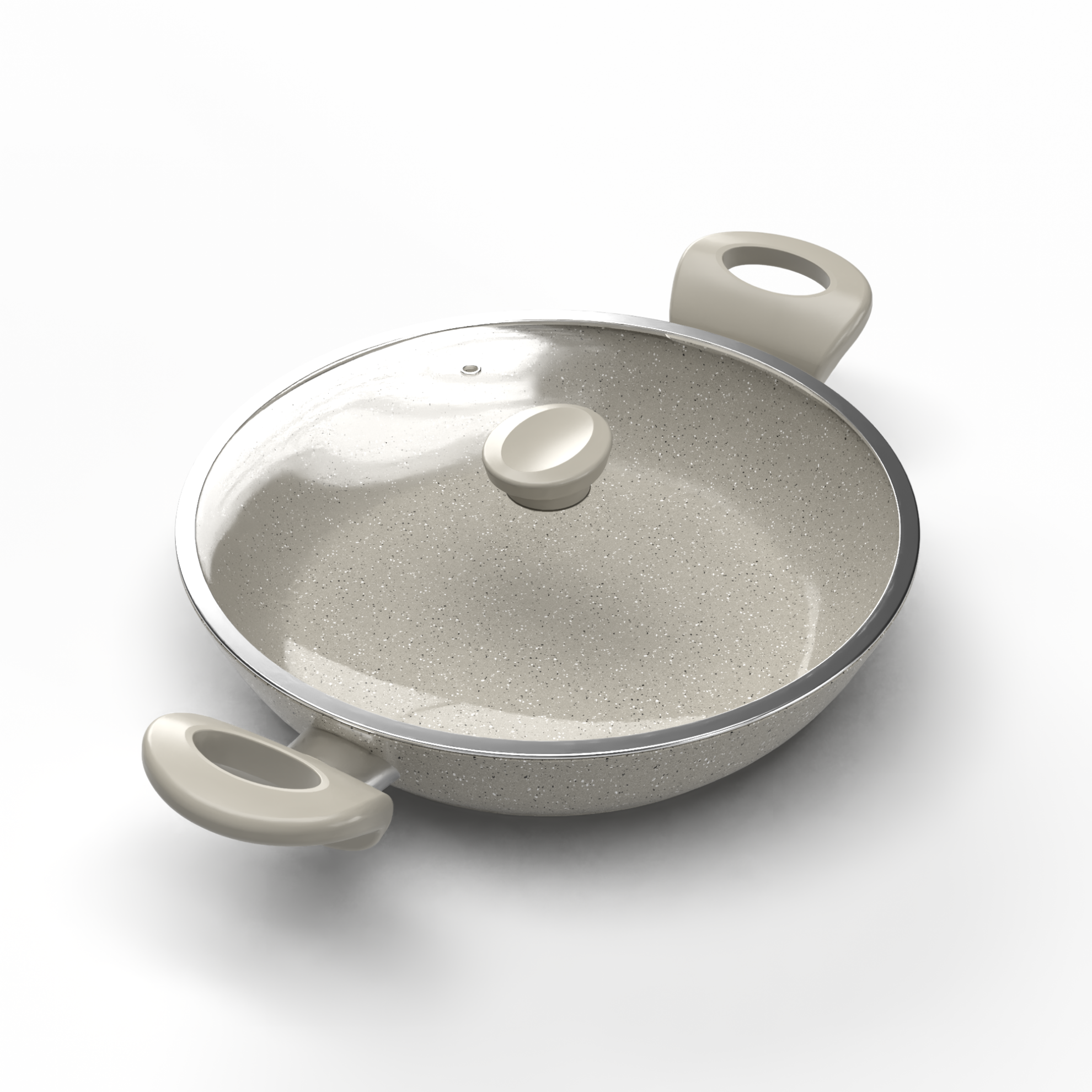 - يتمتع الصحن بطلاء جرانيت كوري متطور، مما يضمن عدم التصاق البيض على السطح. يسهل هذا الطلاء عملية الطهي والتنظيف، مما يسمح لكي بتحضير الطعام بشكل صحي دون الحاجة لاستخدام كميات كبيرة من الدهون.