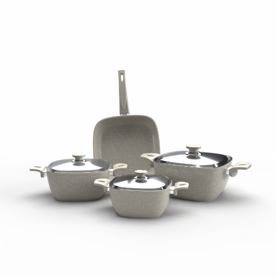 - ألومنيوم بسمك ٤.٢ مم: المواد المستخدمة في تصنيع الأطقم هي ألومنيوم عالي الجودة بسمك ٤.٢ مم، مما يضمن توزيعًا مثاليًا للحرارة ويقلل من الوقت اللازم للطهي، مما يساهم في الحفاظ على مذاق الطعام بشكل مثالي.